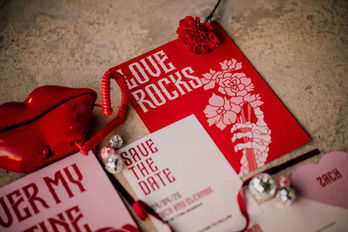 Featuring Skeletal excellence, headstone worthy typography and flowers which are frankly drop dead gorgeous, our "On the Bone" Wedding stationery collection is perfect for those couples who plan to be together till death.