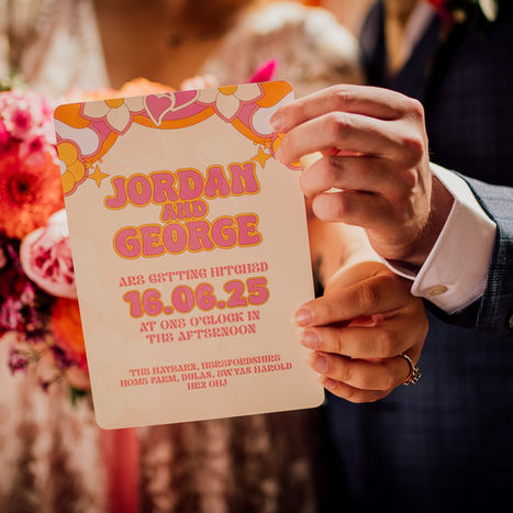 Sunny Side Up is a bold, 1970s‑inspired collection for couples who want their stationery to stand out. The suite pairs groovy florals with quirky, off‑beat typography to capture all the glitz and glam of the disco era—a playful retro vibe that’s perfect for free‑spirited celebrations